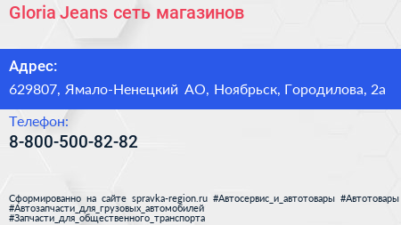 Gloria Jeans, сеть магазинов по адресу 629807, Ямало-Ненецкий АО, Ноябрьск, Городилова, 2а в дальнейшем Организация, размещена в следующих категориях: