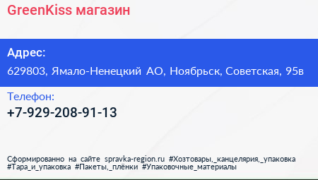GreenKiss, магазин по адресу 629803, Ямало-Ненецкий АО, Ноябрьск, Советская, 95в в дальнейшем Организация, размещена в следующих категориях:
