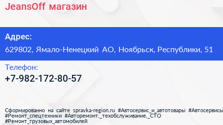 JeansOff, магазин по адресу 629802, Ямало-Ненецкий АО, Ноябрьск, Республики, 51 в дальнейшем Организация, размещена в следующих категориях: