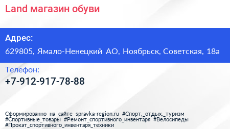 Land, магазин обуви по адресу 629805, Ямало-Ненецкий АО, Ноябрьск, Советская, 18а в дальнейшем Организация, размещена в следующих категориях: