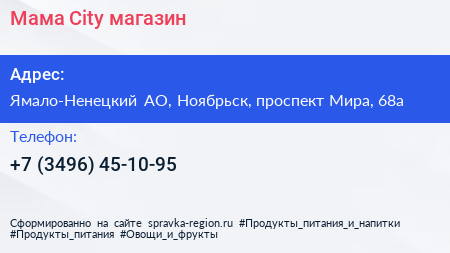 Мама City, магазин по адресу Ямало-Ненецкий АО, Ноябрьск, проспект Мира, 68а в дальнейшем Организация, размещена в следующих категориях: