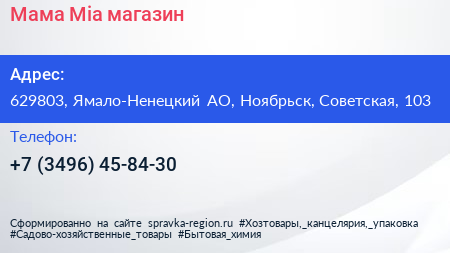 Мама Mia, магазин по адресу 629803, Ямало-Ненецкий АО, Ноябрьск, Советская, 103 в дальнейшем Организация, размещена в следующих категориях: