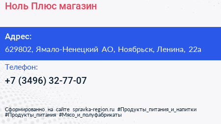 Ноль Плюс, магазин по адресу 629802, Ямало-Ненецкий АО, Ноябрьск, Ленина, 22а в дальнейшем Организация, размещена в следующих категориях: