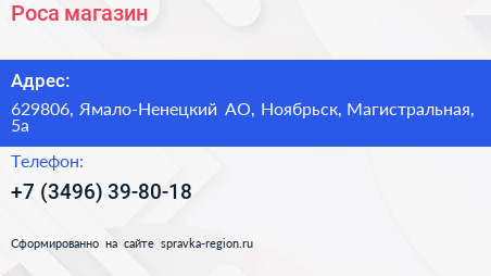 Роса, магазин по адресу 629806, Ямало-Ненецкий АО, Ноябрьск, Магистральная, 5а в дальнейшем Организация, размещена в следующих категориях: