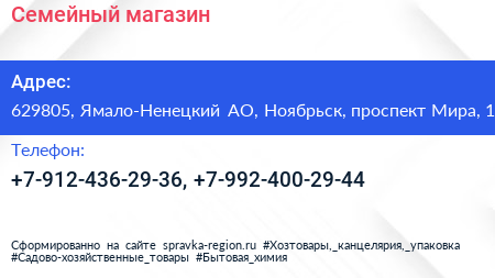 Семейный, магазин по адресу 629805, Ямало-Ненецкий АО, Ноябрьск, проспект Мира, 1 в дальнейшем Организация, размещена в следующих категориях: