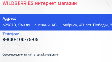 WILDBERRIES, интернет-магазин по адресу 629810, Ямало-Ненецкий АО, Ноябрьск, 40 лет Победы, 9 в дальнейшем Организация, размещена в следующих категориях:
