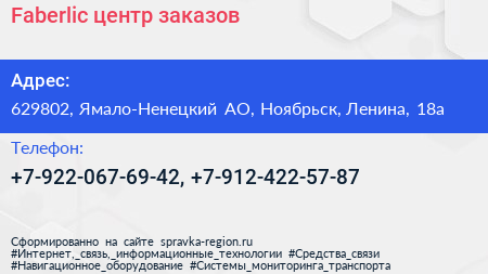 Faberlic, центр заказов по адресу 629802, Ямало-Ненецкий АО, Ноябрьск, Ленина, 18а в дальнейшем Организация, размещена в следующих категориях: