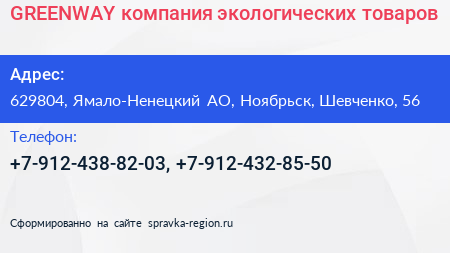 GREENWAY, компания экологических товаров по адресу 629804, Ямало-Ненецкий АО, Ноябрьск, Шевченко, 56 в дальнейшем Организация, размещена в следующих категориях: