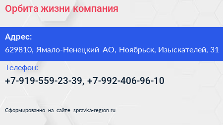 Орбита жизни, компания по адресу 629810, Ямало-Ненецкий АО, Ноябрьск, Изыскателей, 31 в дальнейшем Организация, размещена в следующих категориях: