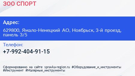 ЗОО-СПОРТ по адресу 629800, Ямало-Ненецкий АО, Ноябрьск, 3-й проезд, панель 3/5 в дальнейшем Организация, размещена в следующих категориях: