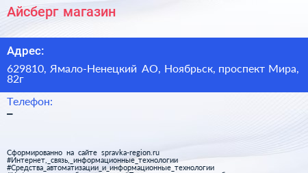 Айсберг, магазин по адресу 629810, Ямало-Ненецкий АО, Ноябрьск, проспект Мира, 82г в дальнейшем Организация, размещена в следующих категориях: