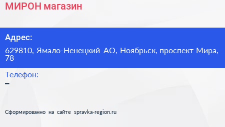 МИРОН, магазин по адресу 629810, Ямало-Ненецкий АО, Ноябрьск, проспект Мира, 78 в дальнейшем Организация, размещена в следующих категориях: