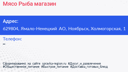 Мясо-Рыба, магазин по адресу 629804, Ямало-Ненецкий АО, Ноябрьск, Холмогорская, 1 в дальнейшем Организация, размещена в следующих категориях: