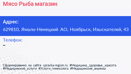 Мясо-Рыба, магазин по адресу 629810, Ямало-Ненецкий АО, Ноябрьск, Изыскателей, 43 в дальнейшем Организация, размещена в следующих категориях: