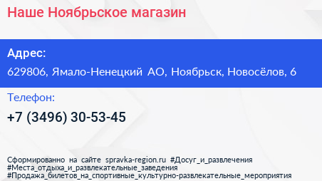 Наше Ноябрьское, магазин по адресу 629806, Ямало-Ненецкий АО, Ноябрьск, Новосёлов, 6 в дальнейшем Организация, размещена в следующих категориях:
