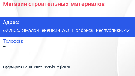 Магазин строительных материалов по адресу 629806, Ямало-Ненецкий АО, Ноябрьск, Республики, 42 в дальнейшем Организация, размещена в следующих категориях: