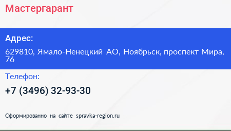 Мастергарант по адресу 629810, Ямало-Ненецкий АО, Ноябрьск, проспект Мира, 76 в дальнейшем Организация, размещена в следующих категориях: