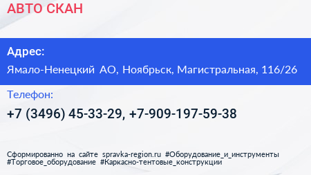 АВТО СКАН по адресу Ямало-Ненецкий АО, Ноябрьск, Магистральная, 116/26 в дальнейшем Организация, размещена в следующих категориях: