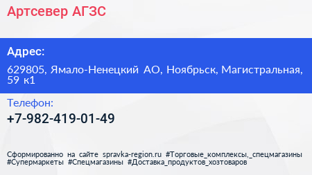 Артсевер, АГЗС по адресу 629805, Ямало-Ненецкий АО, Ноябрьск, Магистральная, 59 к1 в дальнейшем Организация, размещена в следующих категориях:
