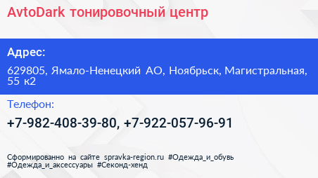 AvtoDark, тонировочный центр по адресу 629805, Ямало-Ненецкий АО, Ноябрьск, Магистральная, 55 к2 в дальнейшем Организация, размещена в следующих категориях: