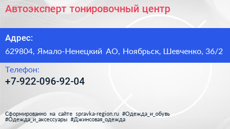 Автоэксперт, тонировочный центр по адресу 629804, Ямало-Ненецкий АО, Ноябрьск, Шевченко, 36/2 в дальнейшем Организация, размещена в следующих категориях: