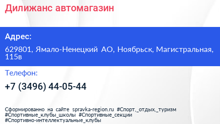 Дилижанс, автомагазин по адресу 629801, Ямало-Ненецкий АО, Ноябрьск, Магистральная, 115в в дальнейшем Организация, размещена в следующих категориях: