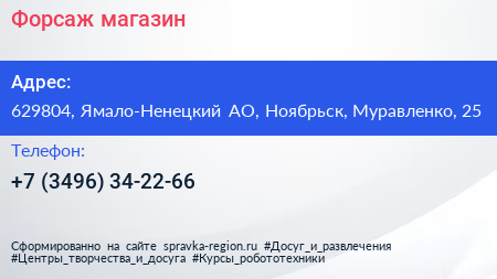 Форсаж, магазин по адресу 629804, Ямало-Ненецкий АО, Ноябрьск, Муравленко, 25 в дальнейшем Организация, размещена в следующих категориях: