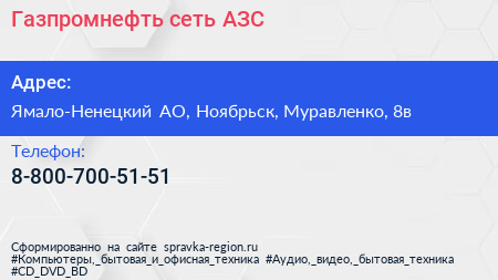 Газпромнефть, сеть АЗС по адресу Ямало-Ненецкий АО, Ноябрьск, Муравленко, 8в в дальнейшем Организация, размещена в следующих категориях: