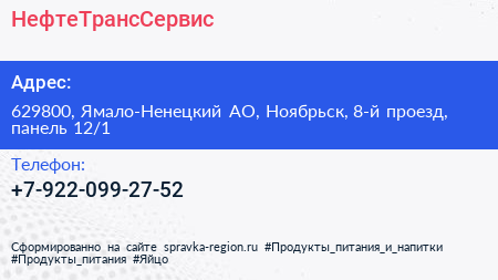 НефтеТрансСервис по адресу 629800, Ямало-Ненецкий АО, Ноябрьск, 8-й проезд, панель 12/1 в дальнейшем Организация, размещена в следующих категориях: