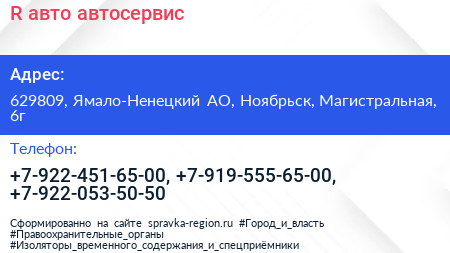 R-авто, автосервис по адресу 629809, Ямало-Ненецкий АО, Ноябрьск, Магистральная, 6г в дальнейшем Организация, размещена в следующих категориях: