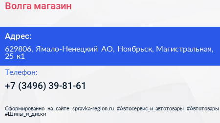Волга, магазин по адресу 629806, Ямало-Ненецкий АО, Ноябрьск, Магистральная, 25 к1 в дальнейшем Организация, размещена в следующих категориях: