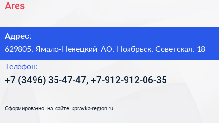 Ares по адресу 629805, Ямало-Ненецкий АО, Ноябрьск, Советская, 18 в дальнейшем Организация, размещена в следующих категориях:
