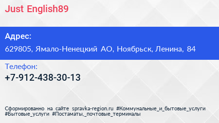 Just English89 по адресу 629805, Ямало-Ненецкий АО, Ноябрьск, Ленина, 84 в дальнейшем Организация, размещена в следующих категориях: