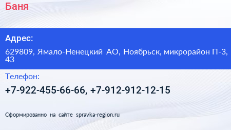 Баня по адресу 629809, Ямало-Ненецкий АО, Ноябрьск, микрорайон П-3, 43 в дальнейшем Организация, размещена в следующих категориях: