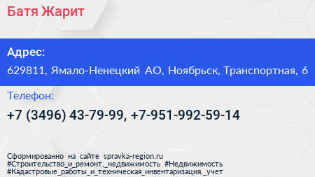 Батя Жарит по адресу 629811, Ямало-Ненецкий АО, Ноябрьск, Транспортная, 6 в дальнейшем Организация, размещена в следующих категориях: