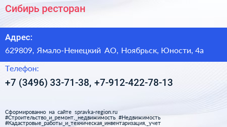 Сибирь, ресторан по адресу 629809, Ямало-Ненецкий АО, Ноябрьск, Юности, 4а в дальнейшем Организация, размещена в следующих категориях: