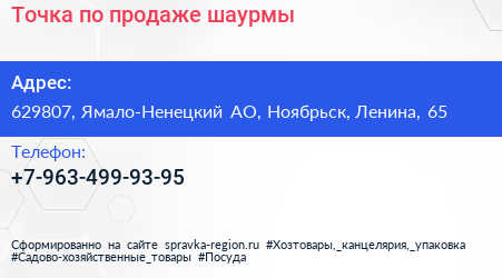 Точка по продаже шаурмы по адресу 629807, Ямало-Ненецкий АО, Ноябрьск, Ленина, 65 в дальнейшем Организация, размещена в следующих категориях: