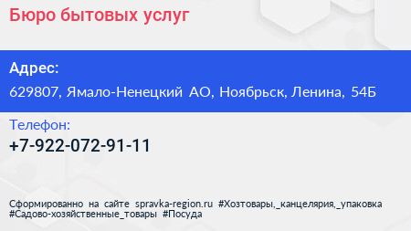 Бюро бытовых услуг по адресу 629807, Ямало-Ненецкий АО, Ноябрьск, Ленина, 54Б в дальнейшем Организация, размещена в следующих категориях:
