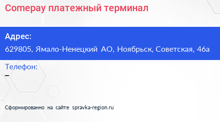 Comepay, платежный терминал по адресу 629805, Ямало-Ненецкий АО, Ноябрьск, Советская, 46а в дальнейшем Организация, размещена в следующих категориях: