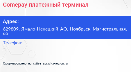 Comepay, платежный терминал по адресу 629809, Ямало-Ненецкий АО, Ноябрьск, Магистральная, 6а в дальнейшем Организация, размещена в следующих категориях: