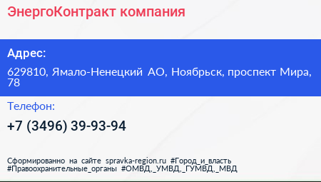 ЭнергоКонтракт, компания по адресу 629810, Ямало-Ненецкий АО, Ноябрьск, проспект Мира, 78 в дальнейшем Организация, размещена в следующих категориях:
