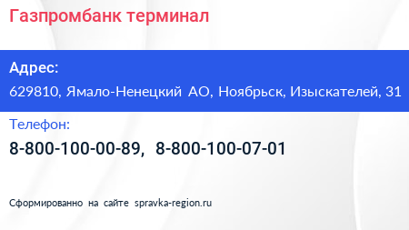 Газпромбанк, терминал по адресу 629810, Ямало-Ненецкий АО, Ноябрьск, Изыскателей, 31 в дальнейшем Организация, размещена в следующих категориях: