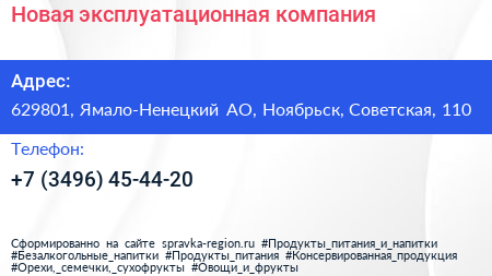 Новая эксплуатационная компания по адресу 629801, Ямало-Ненецкий АО, Ноябрьск, Советская, 110 в дальнейшем Организация, размещена в следующих категориях: