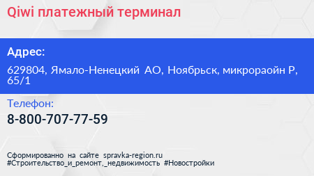 Qiwi, платежный терминал по адресу 629804, Ямало-Ненецкий АО, Ноябрьск, микрораойн Р, 65/1 в дальнейшем Организация, размещена в следующих категориях: