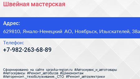 Швейная мастерская по адресу 629810, Ямало-Ненецкий АО, Ноябрьск, Изыскателей, 38а в дальнейшем Организация, размещена в следующих категориях: