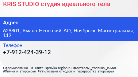 KRIS STUDIO, студия идеального тела по адресу 629801, Ямало-Ненецкий АО, Ноябрьск, Магистральная, 119 в дальнейшем Организация, размещена в следующих категориях: