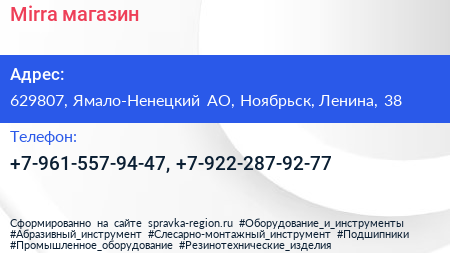 Mirra, магазин по адресу 629807, Ямало-Ненецкий АО, Ноябрьск, Ленина, 38 в дальнейшем Организация, размещена в следующих категориях: