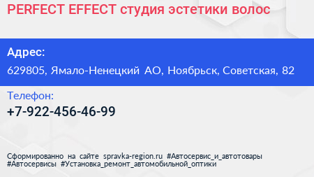 PERFECT EFFECT, студия эстетики волос по адресу 629805, Ямало-Ненецкий АО, Ноябрьск, Советская, 82 в дальнейшем Организация, размещена в следующих категориях: