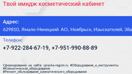 Твой имидж, косметический кабинет по адресу 629810, Ямало-Ненецкий АО, Ноябрьск, Изыскателей, 38а в дальнейшем Организация, размещена в следующих категориях: