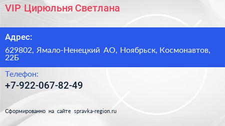 VIP Цирюльня Светлана по адресу 629802, Ямало-Ненецкий АО, Ноябрьск, Космонавтов, 22Б в дальнейшем Организация, размещена в следующих категориях: